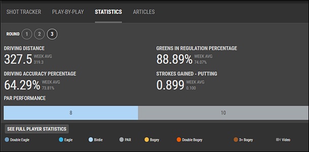 pgatour 사이트에는 볼거리들이 경기와 선수별로 아주 잘 정리되어 있는데요. 영문으로 되어 있지만, 대부분 골프 용어들이고 수치로 되어 있어 쉽게 이해가 되는 부분들입니다.